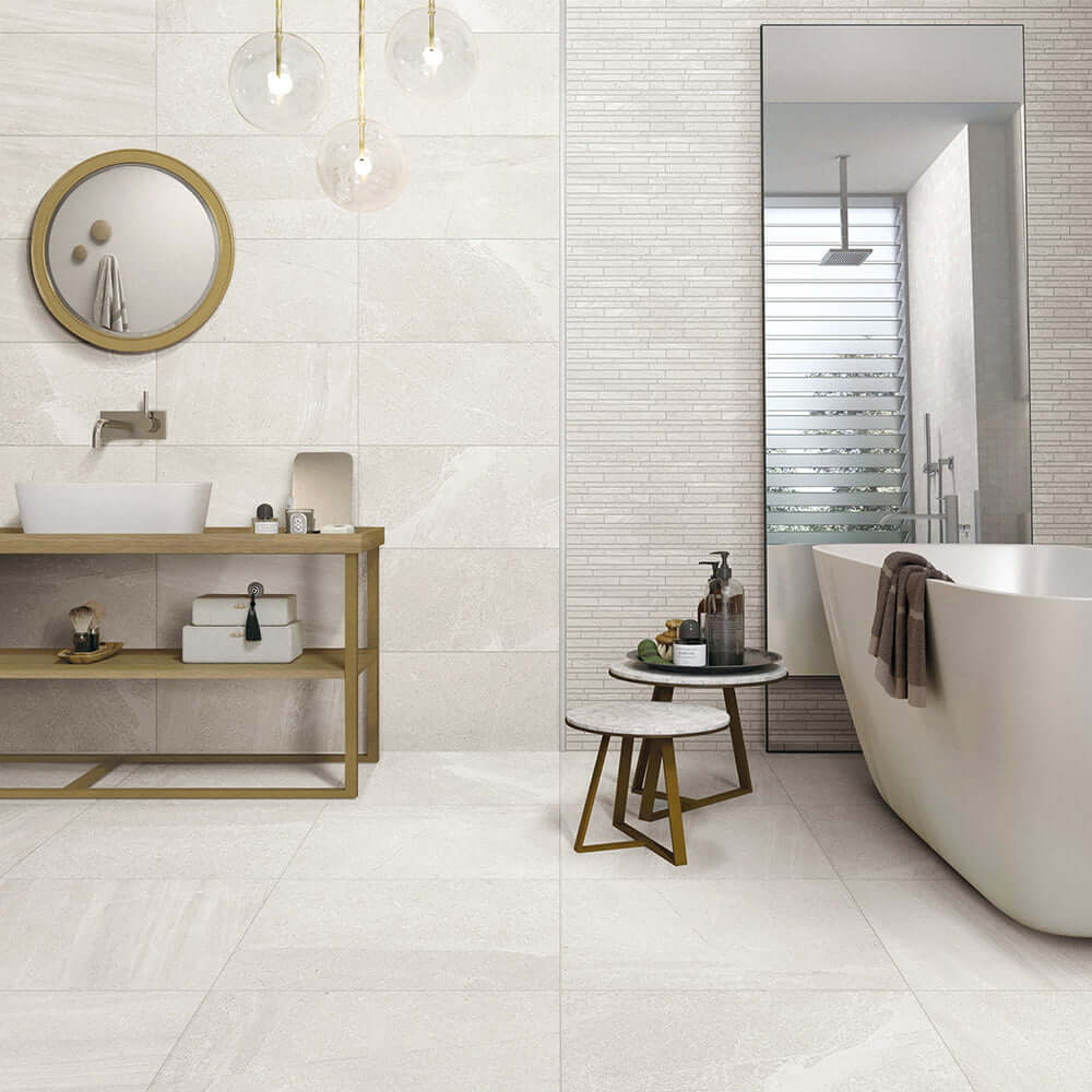 There are a few important factors to have in mind when purchasing tiles online. Firstly you need to know where you will be tiling, will you be needing floor tiles or wall tiles? As these can be very different in size and texture as with our wide range of flooring tiles we make sure they are suitable for walking on, usually with a better slip rating and better scratch resistant. Wall tiles can be smaller and sometimes more fragile with glossy finishes, however they look stunning as splash backs or future walls with some texture. Once you’ve decided on what area you’re tiling you can move onto the material!